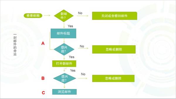 打开邮件后,先扫两眼邮件的内容,如果觉得感兴趣,才会开始认真阅读邮件。